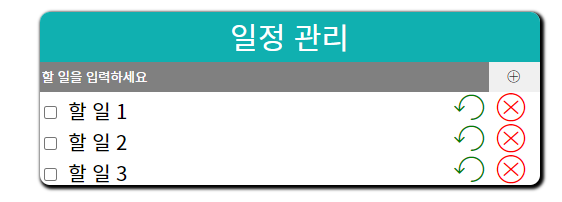먼저, 위와 같은 일정관리 를 만들기 위해서 쉬워보이는 css 부터 완성하고 이후 JavaScript를 이용해서 해야겠다고 마음을 먹었습니다 .